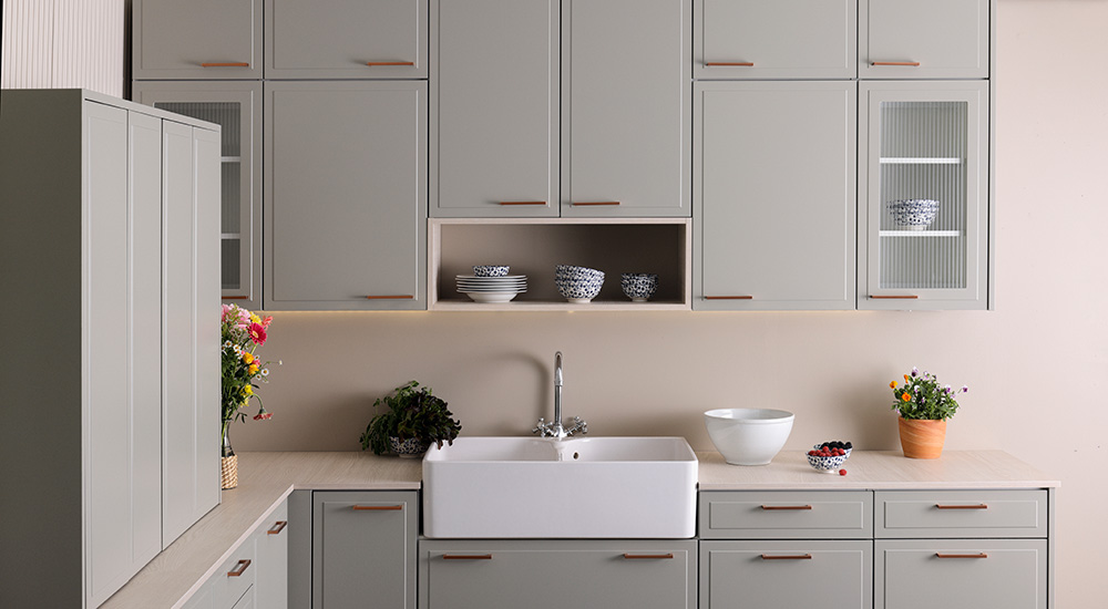Urajako 50 mm. Paneeli alkaa oven keskeltä. Reunimmaisten paneelien leveys vaihtelee välillä 20-70 mm oven leveydestä riippuen.