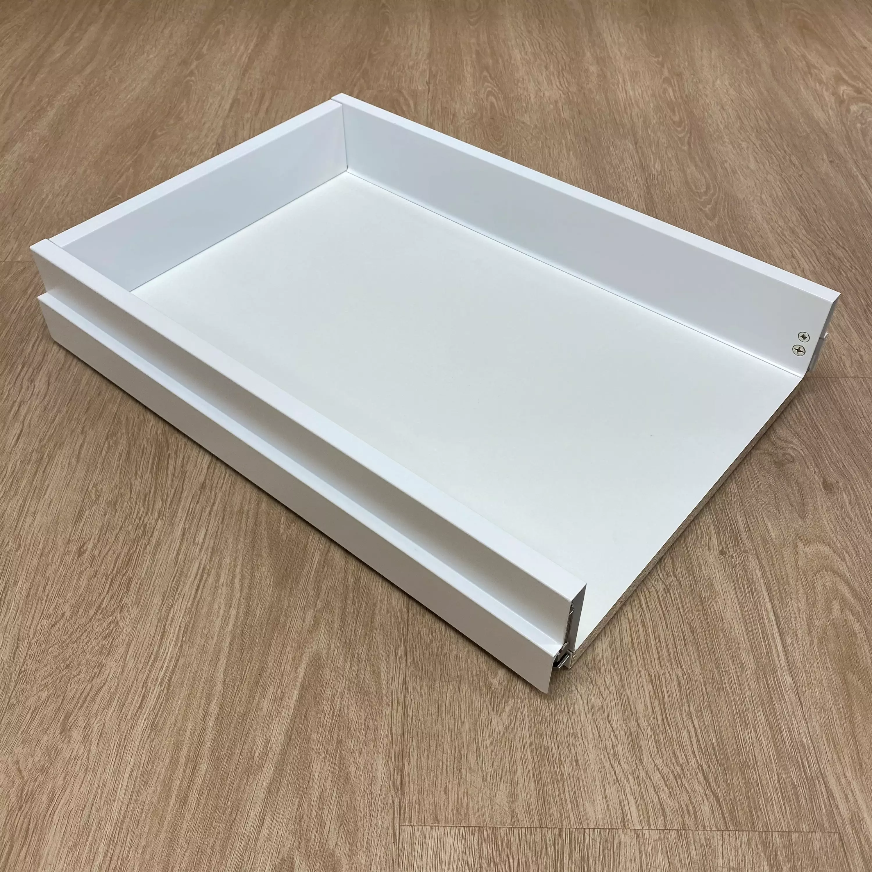 Laatikon malli Grass Scala. Sisältää runkoon kiinnitettävät hidastinkiskot, etusarjan kiinnikkeet, laatikon sivut, pohjan, sekä takalaidan.