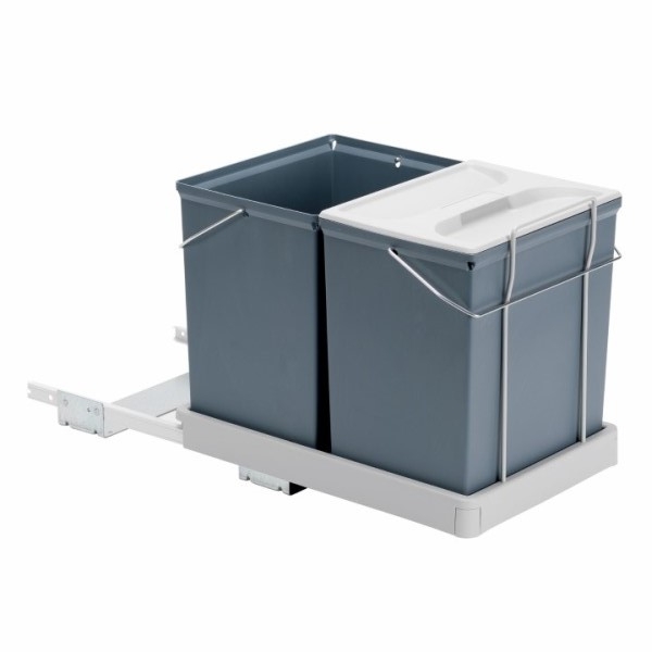 Laadukas, 2-sankoinen jätevaunu. Vaunun ulkomitat 315x460x356mm. Mikäli käytetään ovivipua, on asennettuna vaunun vaatima minimileveys 350mm, (M40 kaappiin). Mukana toimitetaan sapluuna, jonka avulla vaunu ja oveen asennettava ovivipu on helppo asentaa oikeaan paikkaan. Toimitukseen sisältyy kannet 2 kpl, sangot 2 x 17 l ja ovivipu.