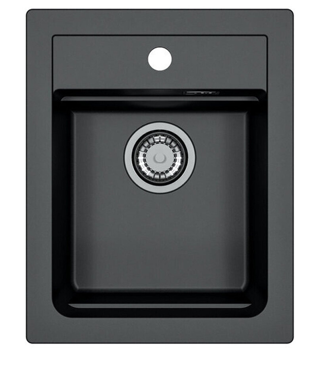 Tyylikäs musta komposiittiallas laadukkaasta ja kestävästä Granital materiaalista. Sopii min. 400mm kaappiin.