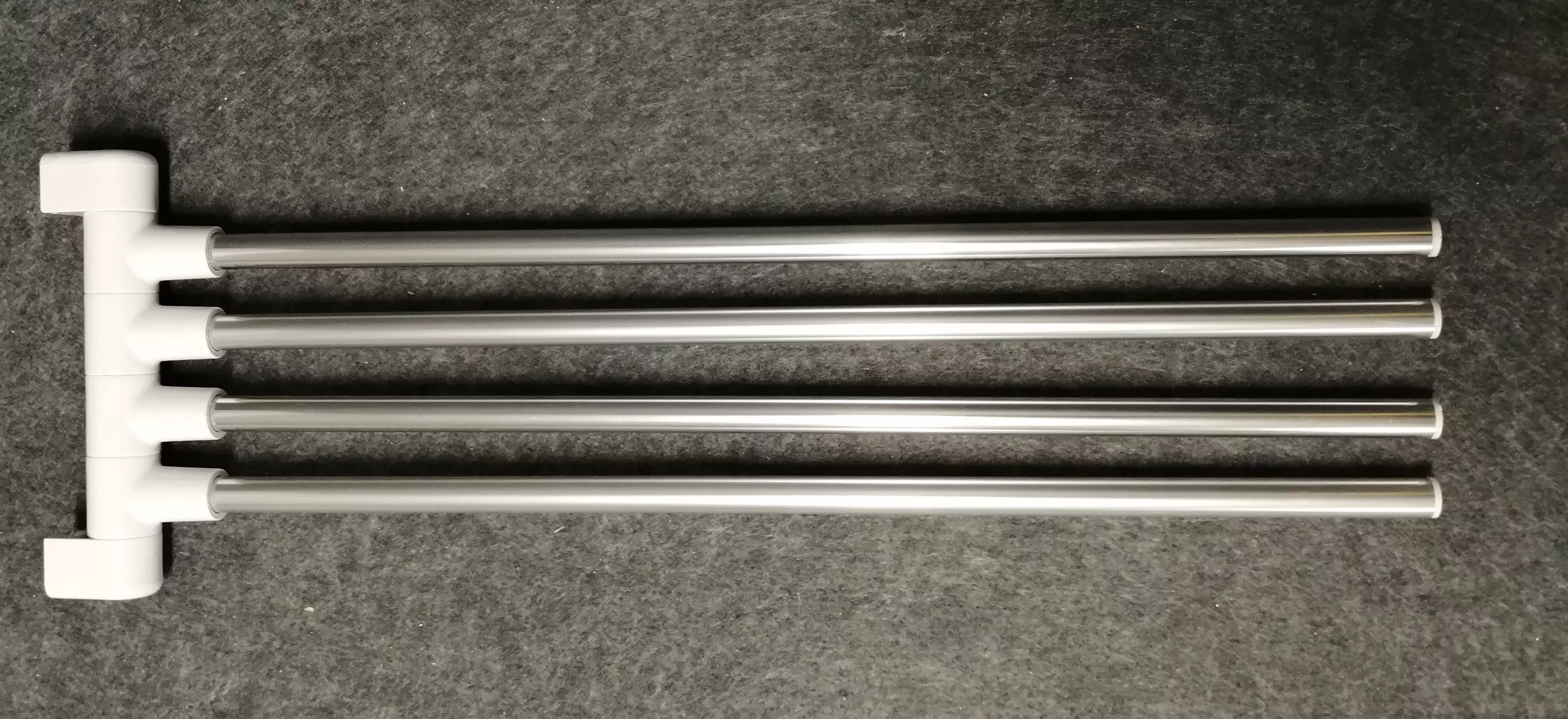 Seinään kiinnitettävä kuivausteline neljällä oksalla (47cm).