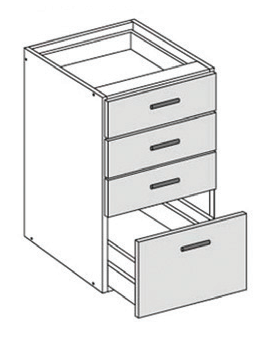 Alakaappi kolmella matalalla ja yhdellä korkealla vetolaatikolla. Etusarjaton. Etusarjat lisätilauksena.