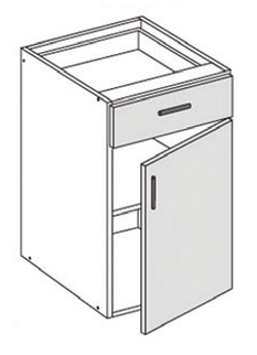 Alakaappi vetolaatikolla ja ovella. Etusarja ja kalusteovi lisätilauksena.