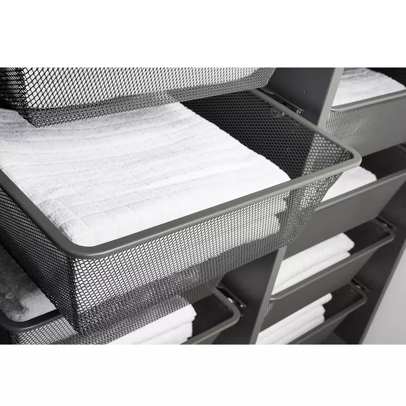 Harmaa tiheäverkkoinen mesh-lankakori. Pehmäliukuinen. Sisältää kiskot sekä korin. Korin korkeus n.16cm. Soveltuu sisäleveydeltään 368-768mm leveään kaappiin. Esim. 60cm kori sopii kaappiin jonka sisäleveys on 56,8cm. Kaapin minimisyvyys 50cm.
