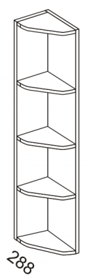 Avopäätyhyllykkä kaappirivistön päätteeksi.