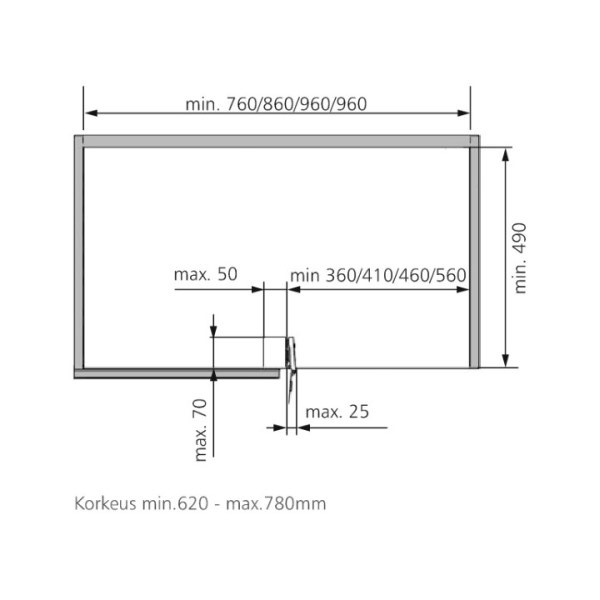 Piilokulmamekanismi Slide-out vasen