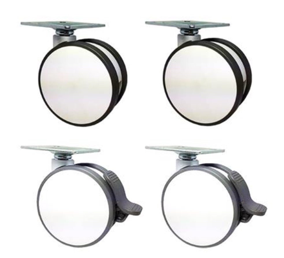 Setti sisältää 2 jarrutonta ja 2 jarrullista pyörää
