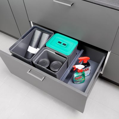 - runkoleveys 50 cm - syvyys 400 mm, korkeus 310 mm - sankojärjestys muunneltavissa - vaimennettu GRASS Nova Pro 400 mm runkokisko - laatikon sivu GRASS Nova Pro SCALA 400 mm - Scala 186 mm laatikossa sangot laatikon pohjalla - Scala 90 mm laatikko ilman pohjalevyä - mahdollista asentaa kaksi sarjaa päällekkäin