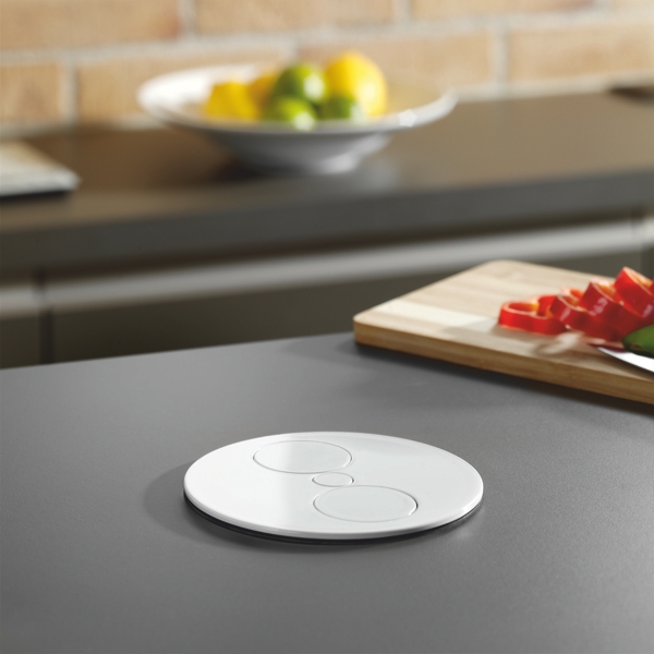 Twist pistorasiapaneeli on vain 40 mm korkea, joten se voidaan upottaa tasoon myös laatikoston yläpuolelle.