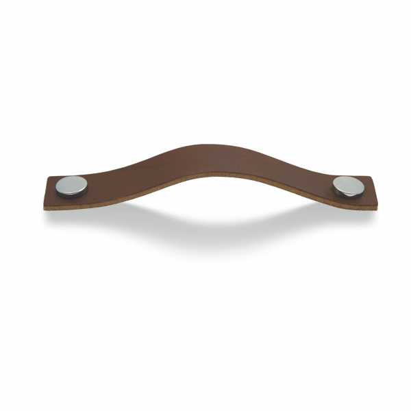 Vedin 128mm ruskeaa nahkaa kromatuilla kiinnitysholkeilla. Korkealaatuista kasvivärjättyä nahkaa Vetimen mitat 154 (L) x25(K)x19(S)mm. Sisältää 18 ja 22mm ruuvit.