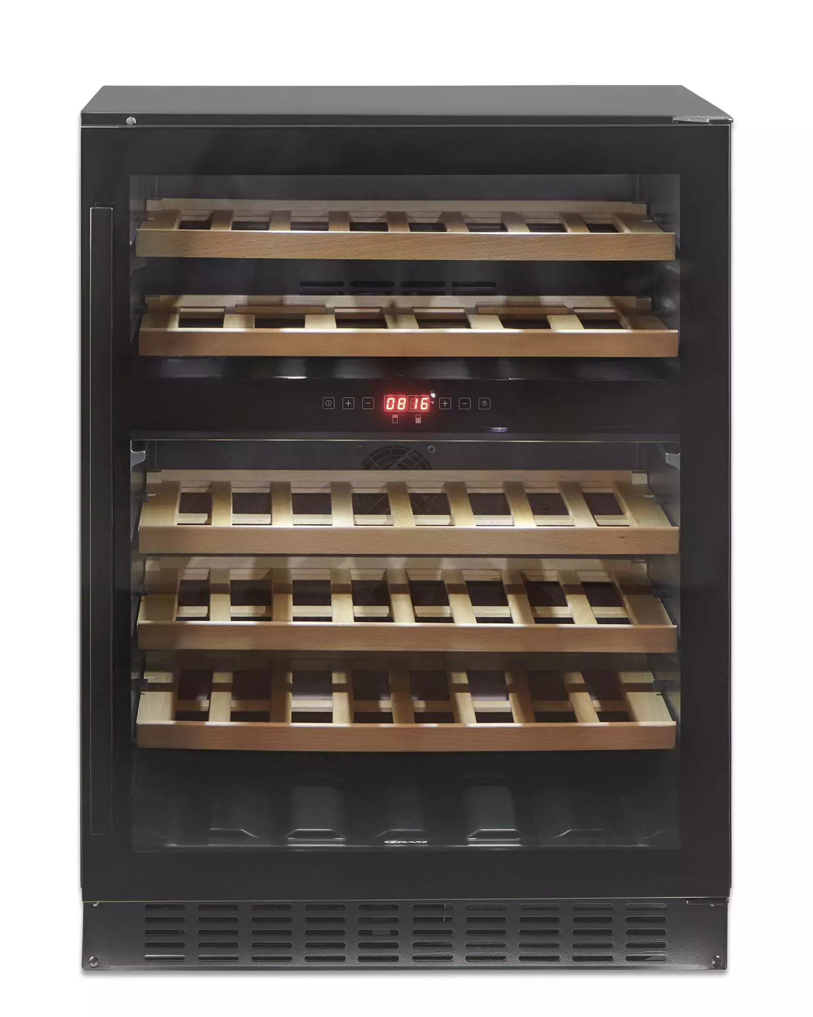 GRAM VS 54586-92 B Viinikaappi 60 cm, puuhyllyillä, 2-lämpötilaa, 125 l, musta