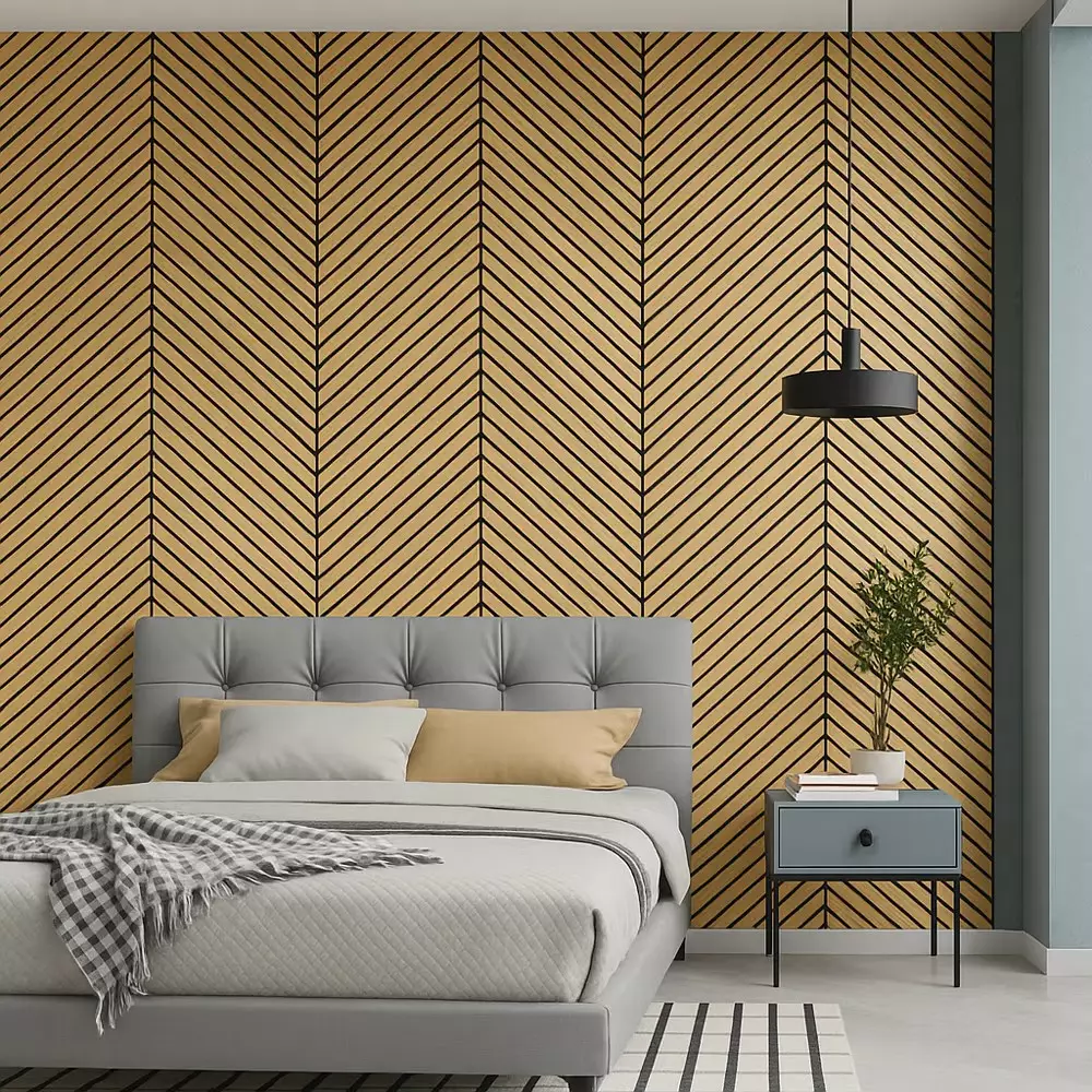 Suurikokoinen akustiikkalevy yhdistää näyttävän designin ja tehokkaan äänenvaimennuksen. Vaaleat MDF-slatit ja musta huopapohja luovat modernin ilmeen, joka sopii niin koteihin kuin julkisiin tiloihin.