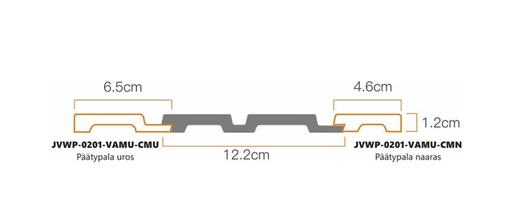 Leveys: 65 mm Pituus: 2600 mm Paksuus: 12 mm Materiaali: Polystyreeni Värit: Vaalea tammi (pohja musta) Puulaji: Tammi Pintakäsittely: Maalattu Soveltuu kosteisiin tiloihin: Kyllä Soveltuu saunaan: Ei Profiili: Valeurapaneeli Päätypontti: Ei Sisä-/ulkokäyttöön: Sisäkäyttöön Asennustapa: Liimaus, Naulaus