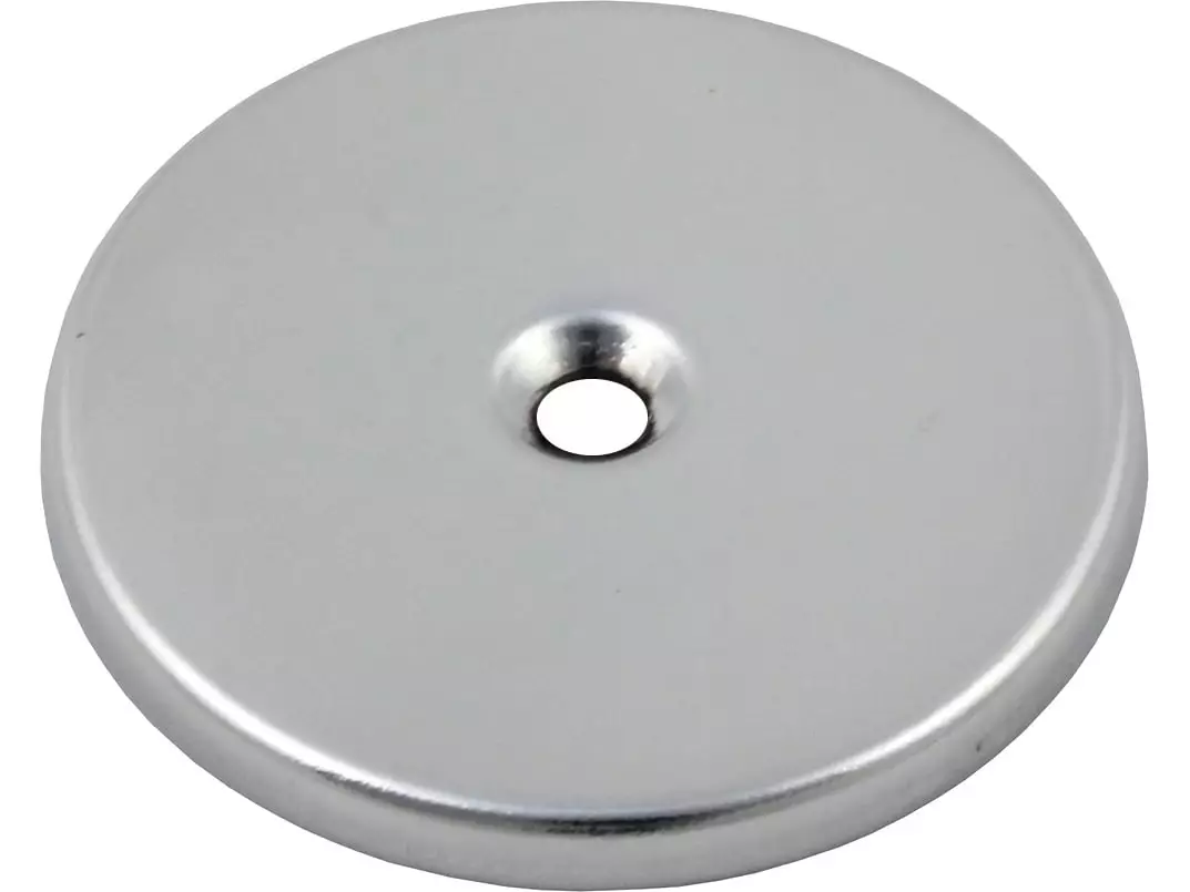 Sokea peitekilpi välioville, materiaali teräs, viimeistely kromi. Pakkaus sisältää kilpiparin ja ruuvit. Kilven halkaisija 50 mm. Syvyys 5 mm.