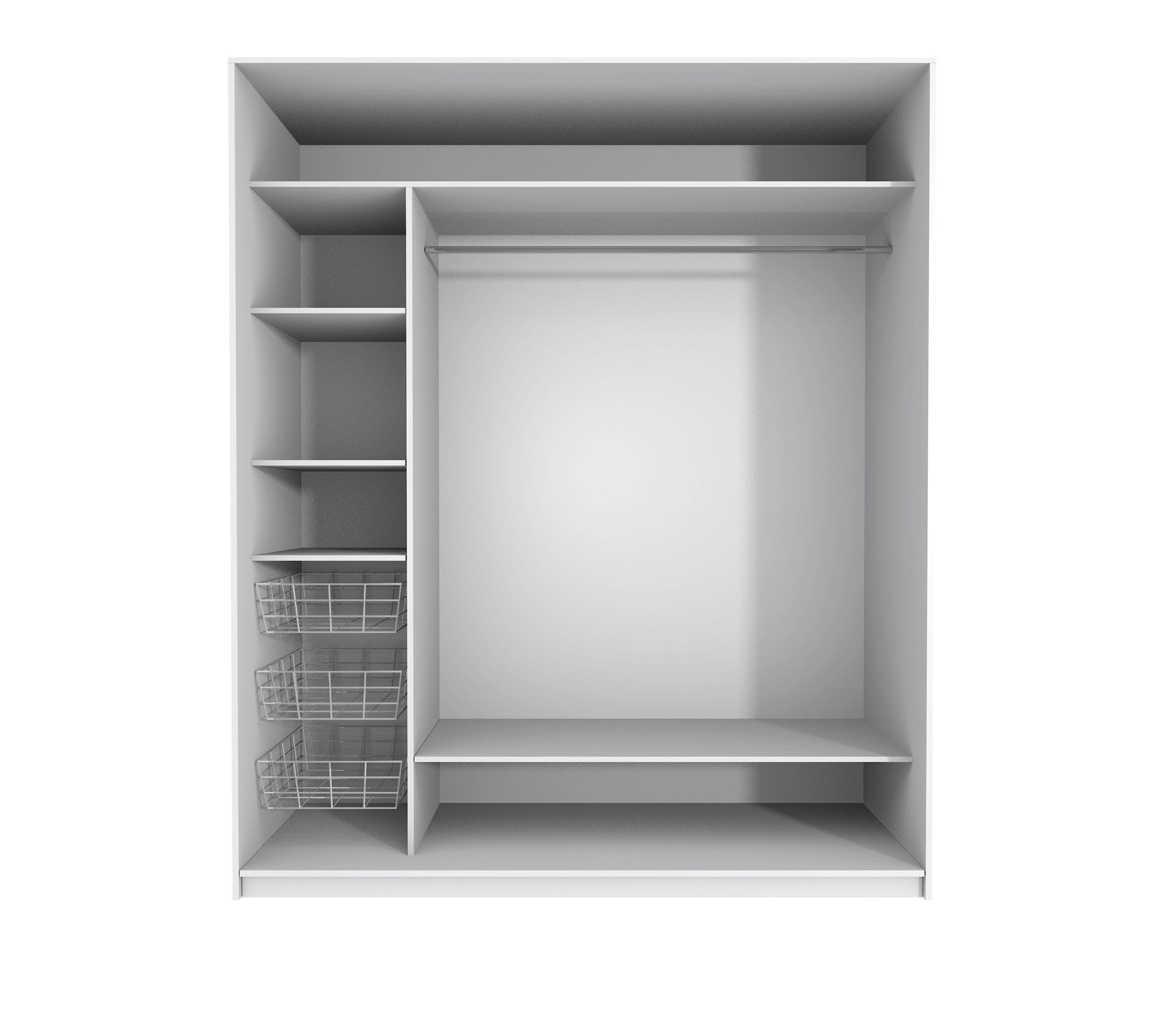 - Liukuovi/ovet vakiona: kirkas peili. - Kehäosien levyn paksuus 18 mm. - Välisivujen levyn paksuus 18 mm. - Hyllylevyjen paksuus 16 mm. - Ylähyllylevyn paksuus 16 mm. - Taustalevyn paksuus on 8 mm ja pinta valkoinen matta. - Tila liukuovia varten S 88 mm välikaton etureunasta. - Ylähyllyjen syvyys on 512 mm. - Välisivun syvyys on 510 mm. - Hyllylevyjen syvyys on 508 mm ilman taustoja ja taustojen kanssa 500 mm. - Komeron kokonaissyvyys on 600 mm. - Sokkelikorkeus on 64+18 mm. - Liukuovikomeron sisäaukko on aina - 36 mm komeron kokonaisleveydestä. - SETDesign liukuovikomerot myydään settinä.