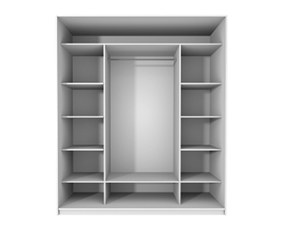 - Liukuovi/ovet vakiona: kirkas peili. - Kehäosien levyn paksuus 18 mm. - Välisivujen levyn paksuus 18 mm. - Hyllylevyjen paksuus 16 mm. - Ylähyllylevyn paksuus 16 mm. - Taustalevyn paksuus on 8 mm ja pinta valkoinen matta. - Tila liukuovia varten S 88 mm välikaton etureunasta. - Ylähyllyjen syvyys on 512 mm. - Välisivun syvyys on 510 mm. - Hyllylevyjen syvyys on 508 mm ilman taustoja ja taustojen kanssa 500 mm. - Komeron kokonaissyvyys on 600 mm. - Sokkelikorkeus on 64+18 mm. - Liukuovikomeron sisäaukko on aina - 36 mm komeron kokonaisleveydestä. - SETDesign liukuovikomerot myydään settinä.