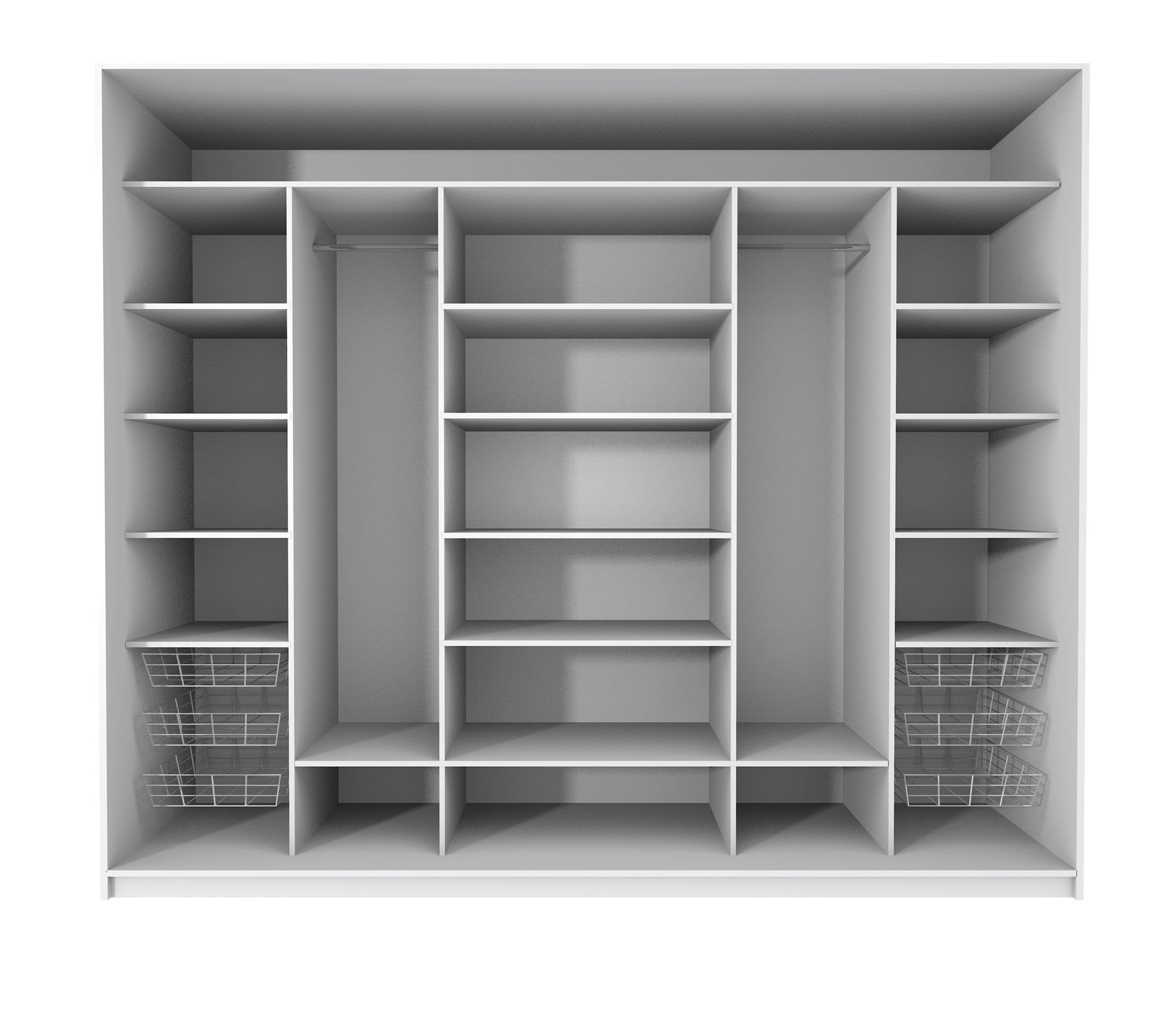- Liukuovi/ovet vakiona: kirkas peili. - Kehäosien levyn paksuus 18 mm. - Välisivujen levyn paksuus 18 mm. - Hyllylevyjen paksuus 16 mm. - Ylähyllylevyn paksuus 16 mm. - Taustalevyn paksuus on 8 mm ja pinta valkoinen matta. - Tila liukuovia varten S 88 mm välikaton etureunasta. - Ylähyllyjen syvyys on 512 mm. - Välisivun syvyys on 510 mm. - Hyllylevyjen syvyys on 508 mm ilman taustoja ja taustojen kanssa 500 mm. - Komeron kokonaissyvyys on 600 mm. - Sokkelikorkeus on 64+18 mm. - Liukuovikomeron sisäaukko on aina - 36 mm komeron kokonaisleveydestä. - SETDesign liukuovikomerot myydään settinä.