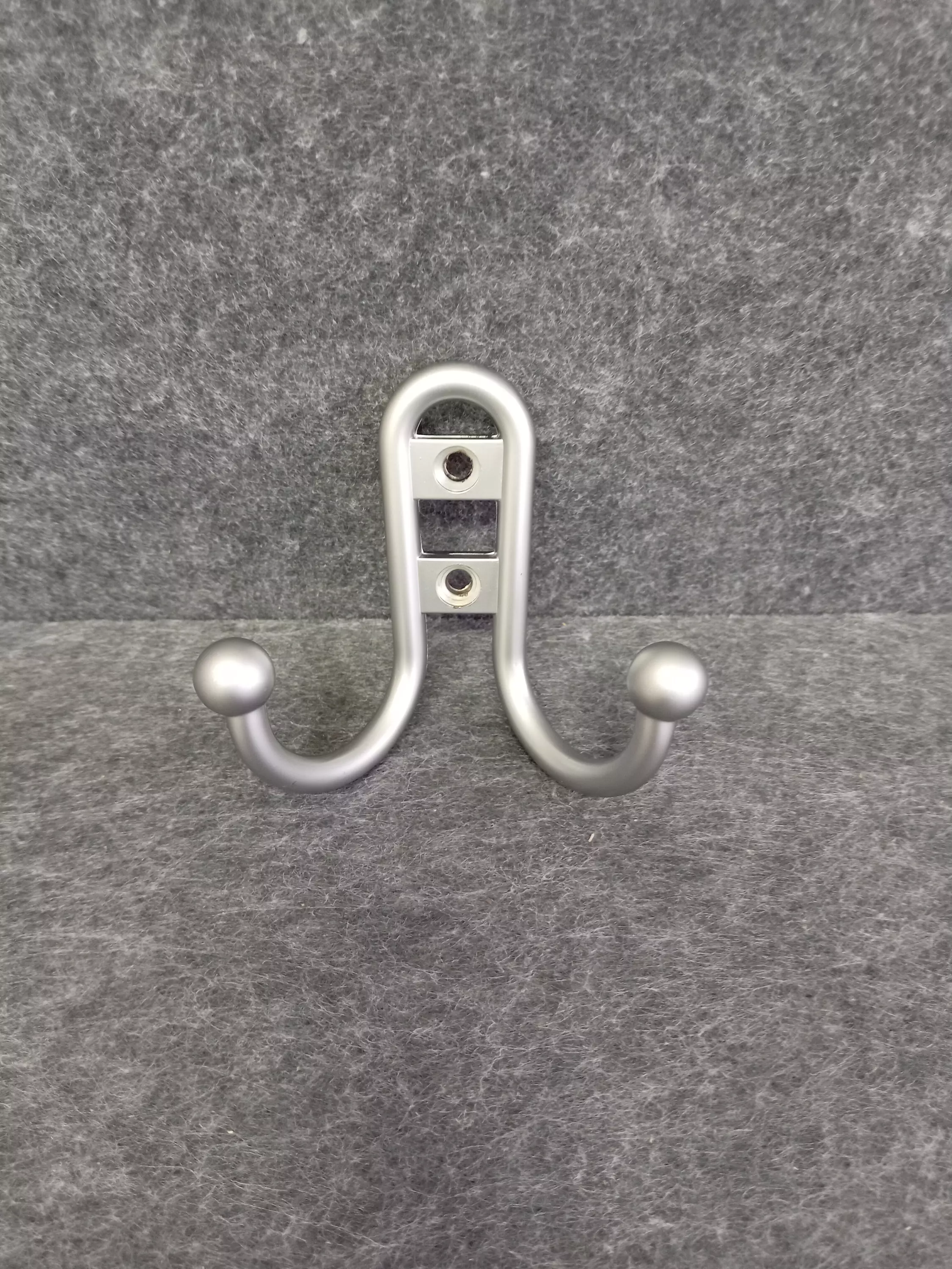 Kaksi koukkuinen vaatekoukku ruuvikiinnityksellä.