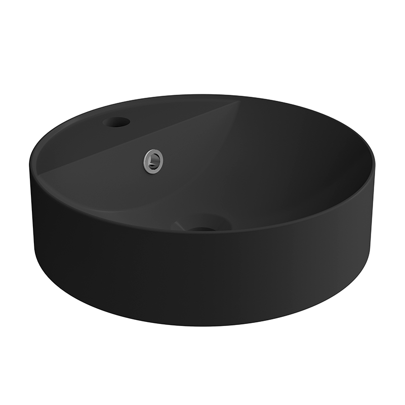 Tason päälle asennettava valumarmoriallas Circus on muotoilultaan pyöreä allas, jossa takaosassa hanalle paikka.