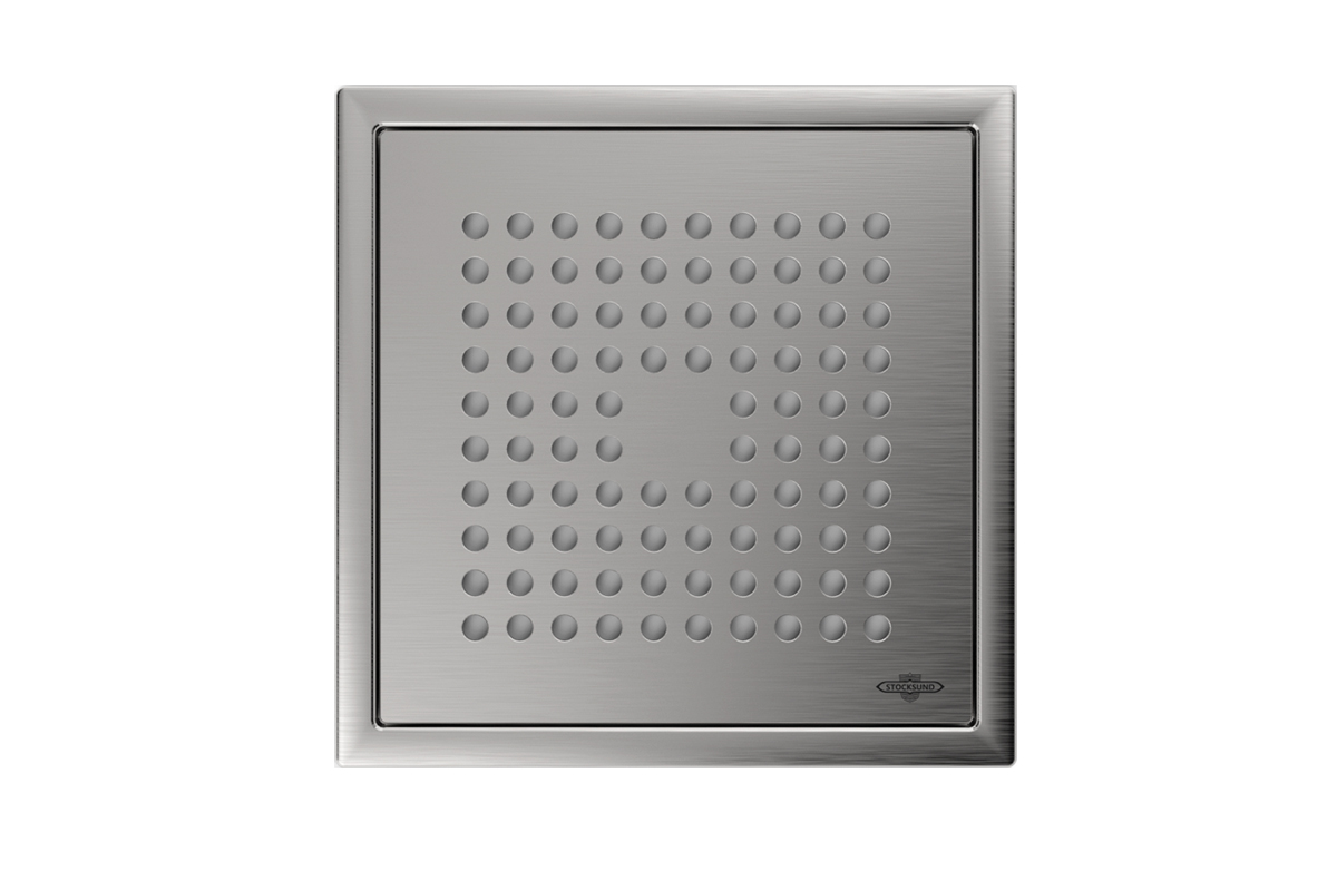 Ruostumaton teräs 197x197mm sopii täydellisesti 10x10 lattialaatoille. SUS 304 paras ruostumaton teräs, korkeus 5,4 mm.