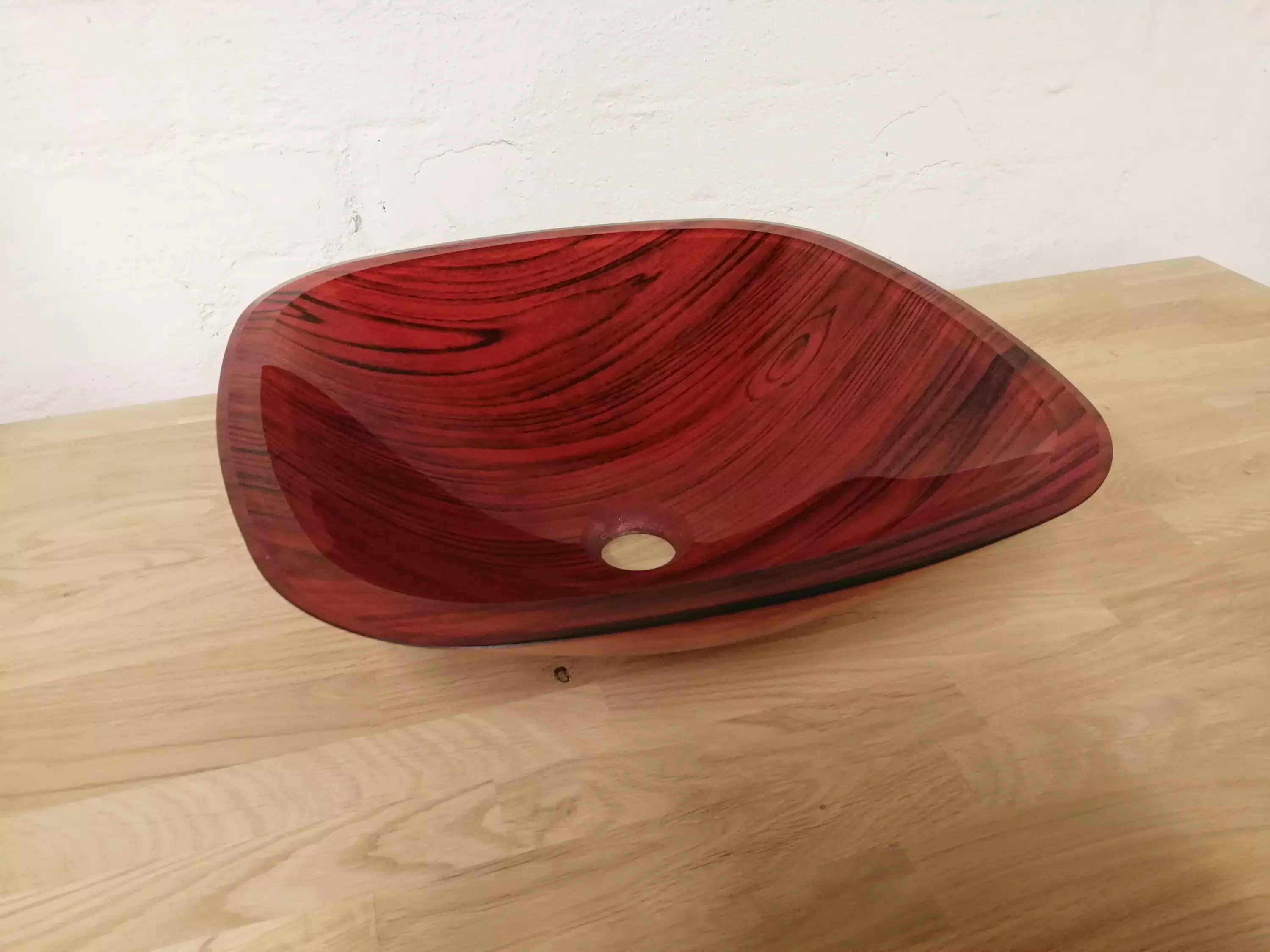 Valaistus vaikuttaa väriin. Väri punainen/ruskea.