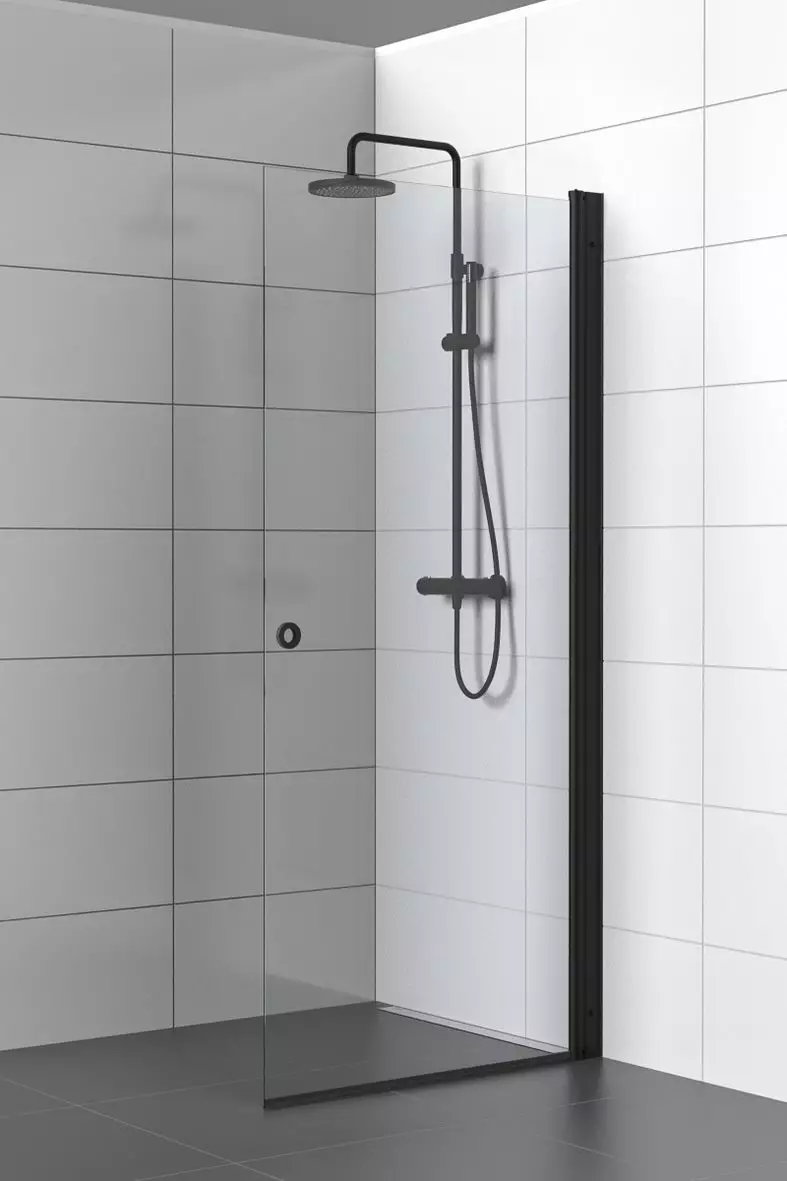 SS-M kääntyvä suihkuseinä mustilla metalliosilla, kirkas lasi - Suihkuseinät - SS90K-M - 1