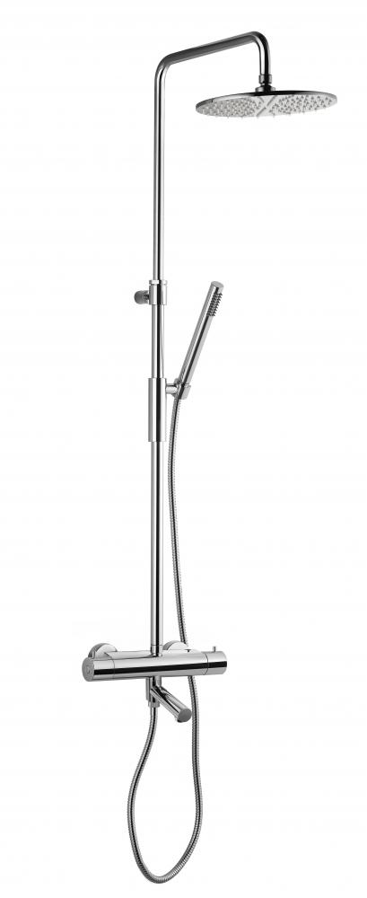Tyylikäs kattosuihku teleskooppitoiminnolla sekä ammetermostaatilla, vaihdin suihkutangossa. Korkeussäädettävä.