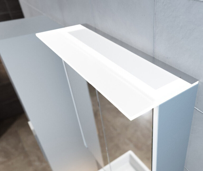 Helppo asentaa peilikaapiin käyttäen vain kahta ruuvia. Saatavana kaksi eri leveyttä 60cm ja 80cm.